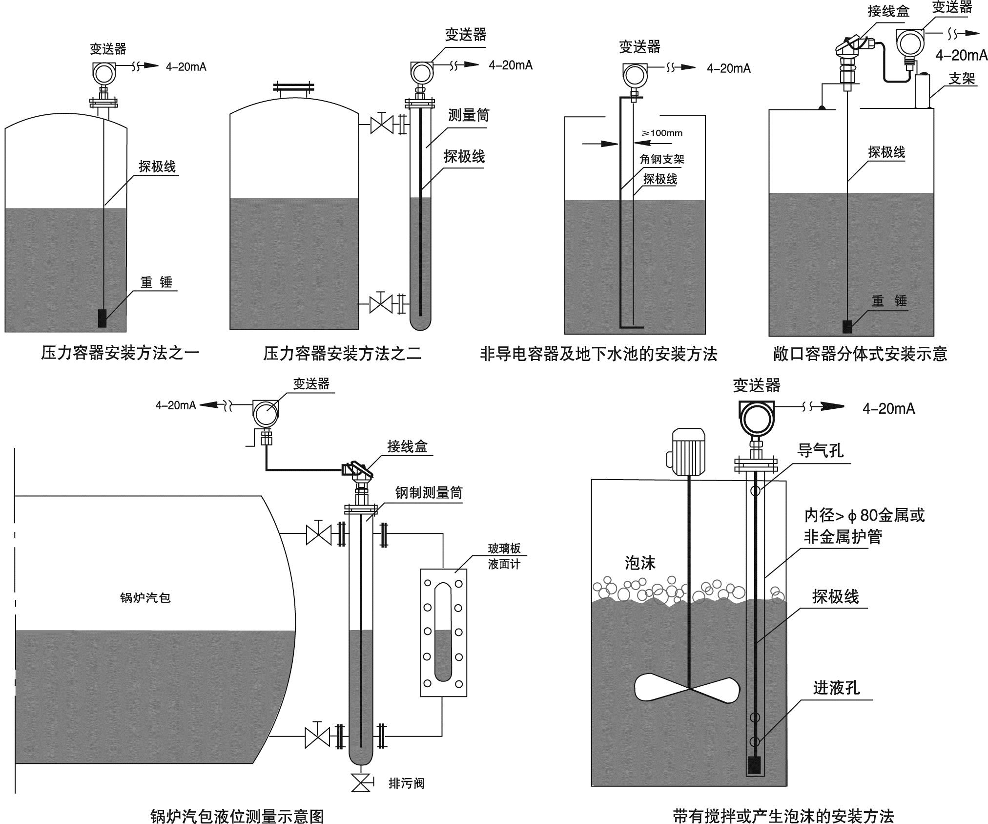 測量探極:單探極(金屬容器);雙探極(非金屬容器)